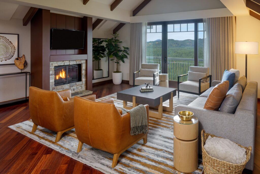 Inspired by the grand lodges of Washington’s national parks, The Lodge sets a breathtaking — and centrally located — stage for your best Cascade Mountains escape ever. Settle into an expansive room, warmly welcomed not only by The Lodge’s caring staff, but by sweeping river valley and mountain peak views. Hungry? Pop downstairs to The Source Plates and Pours for creative twists on our Pacific Northwest culinary heritage. Sore from hiking or biking our 40+ miles of trails? Let our concierge book you a dreamy massage at Glade Spring Spa, mere steps away.